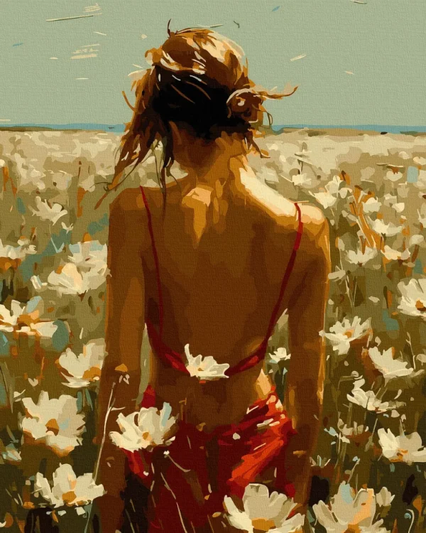 Tyttö kukkien keskellä